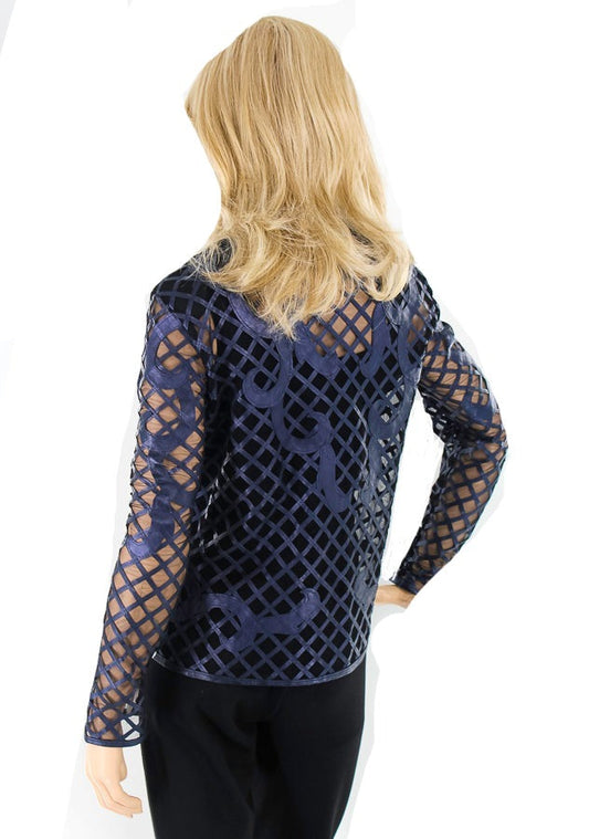 ABF 11910113 Blue/Silver/Bone Long Leaves Leather Jacket