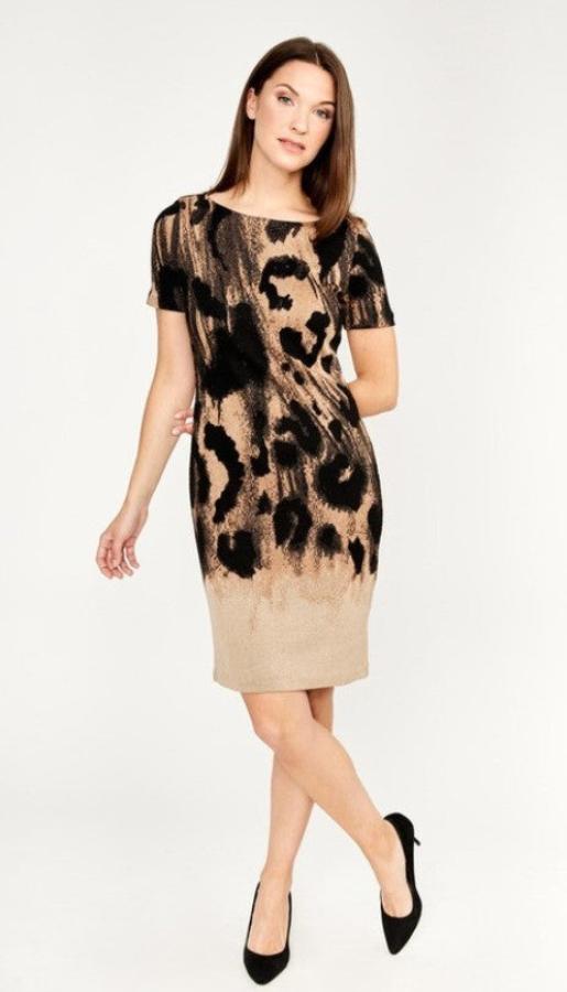 Frank Lyman 233410 Black/Beige Animal Print Knit Dress