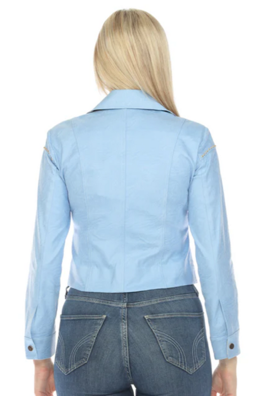 Lena Gabrielle Mint Zipper Detail Pleather Jacket BCJ9033BL