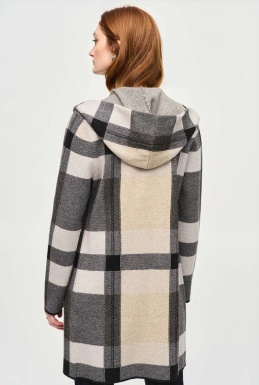 Joseph Ribkoff 243925 Black/Oatmeal Melange/Grey Hooded Cover-Up