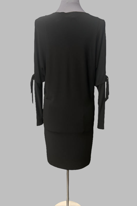 Joseph Ribkoff 213076 Black Grommet Tie Detail Dolman Sleeve Dress