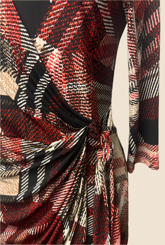 Frank Lyman 213414 Red/Multi-Color Plaid Faux Wrap Dress