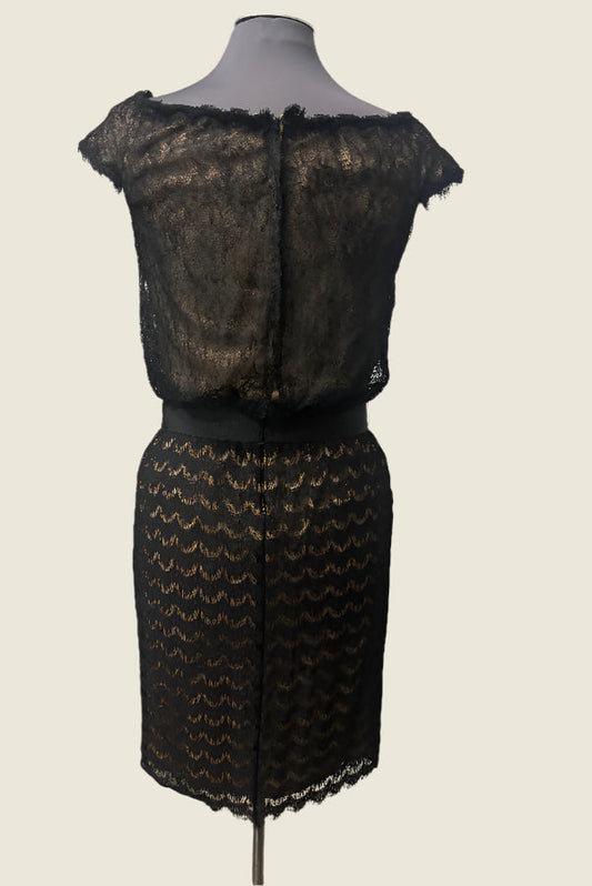 Tadashi Shoji TD967M Black/Gold Lace Dress with Waist Tie