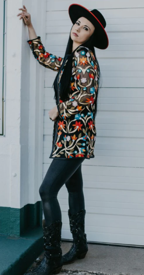 ABF 0920 Black/Multi-Color Leather 3/4 Rocker Jacket