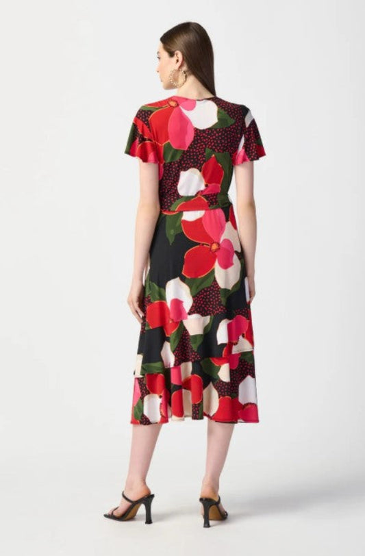 Joseph Ribkoff 241285 Black-Multi Floral Print Flowy Wrap Dress