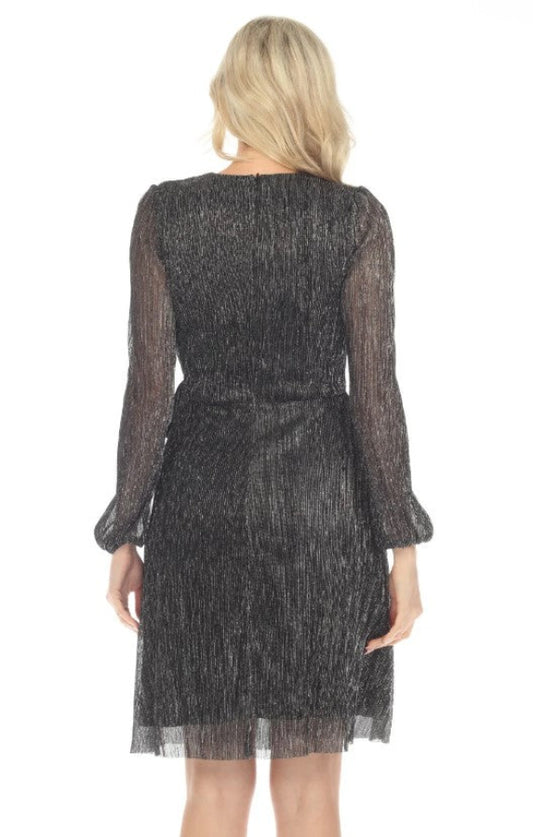 Joseph Ribkoff 234709 Black/Silver Metallic Faux Wrap A-Line Dress