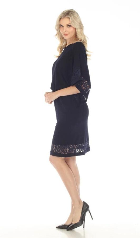 Joseph Ribkoff 241083 Midnight Blue Lace Trim Kimono Sleeve Blouson Dress