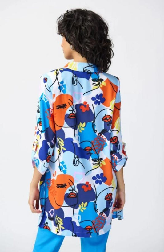 Joseph Ribkoff 241146 Vanilla/Multi Abstract Face Print Longline Blazer Jacket