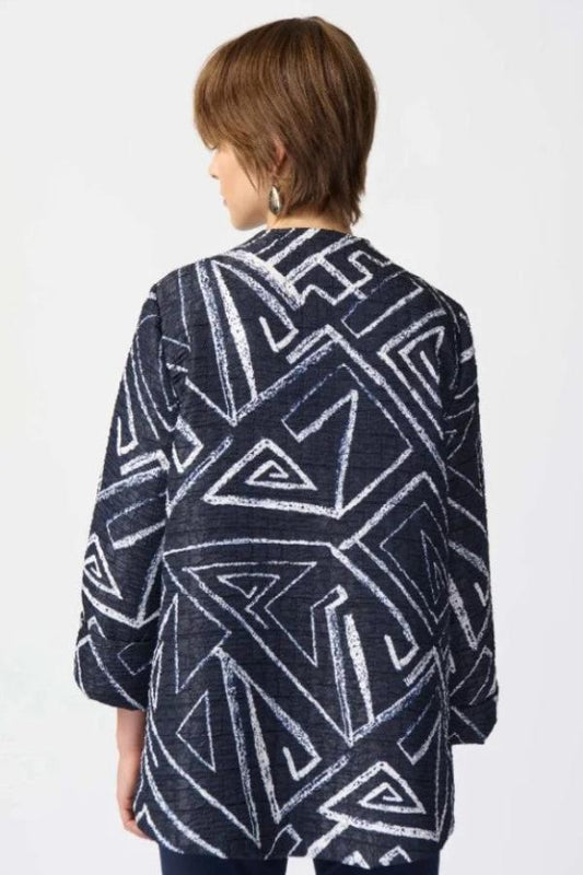 Joseph Ribkoff 241291 Midnight Blue/Vanilla Geometric Print Swing Asymmetric Jacket