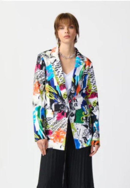 Joseph Ribkoff 241302 Vanilla/Multi Abstract Print Longline Blazer Jacket