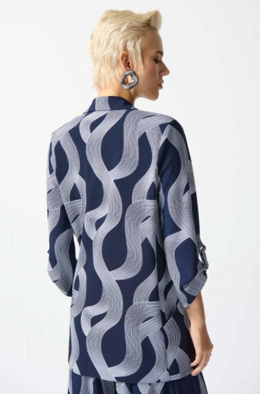 Joseph Ribkoff 242198 Midnight Blue/Vanilla Wavy Print Longline Blazer Jacket