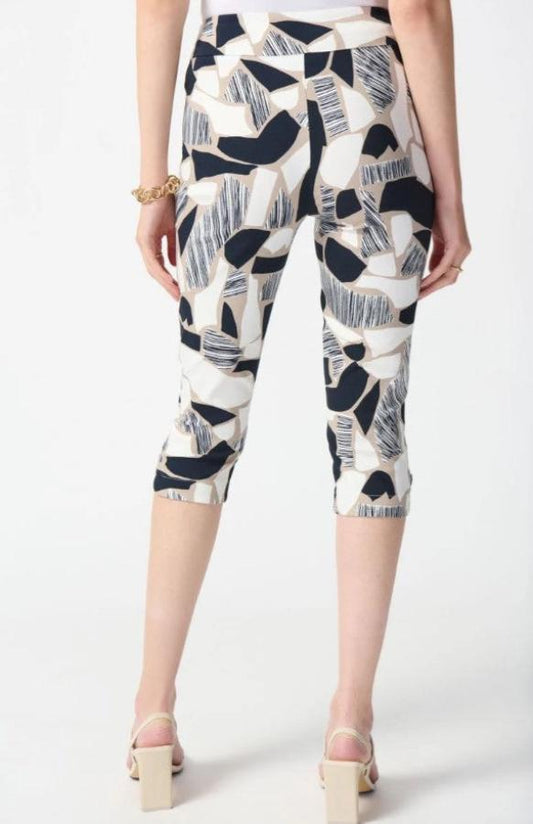 Joseph Ribkoff 242224 Vanilla/Multi Abstract Print Pull On Capri Pants