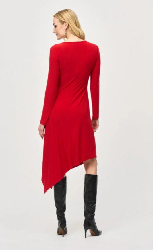 Joseph Ribkoff 243153 Lipstick Red Asymmetric Midi Fit And Flare Dress