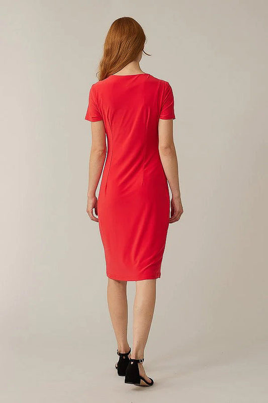 Joseph Ribkoff Lacquer Red Crisscross Neck Short Sleeve Sheath Dress 221350