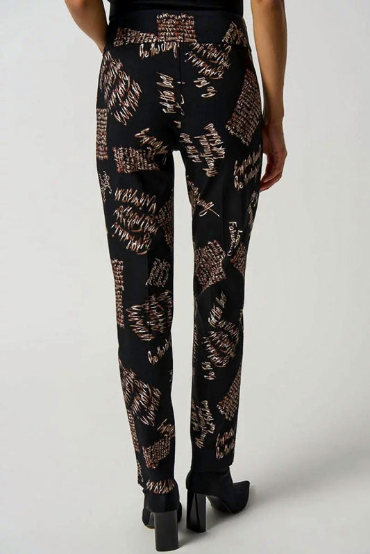 Joseph Ribkoff 233286 Black/Multi Script Print Slim Ankle Pants