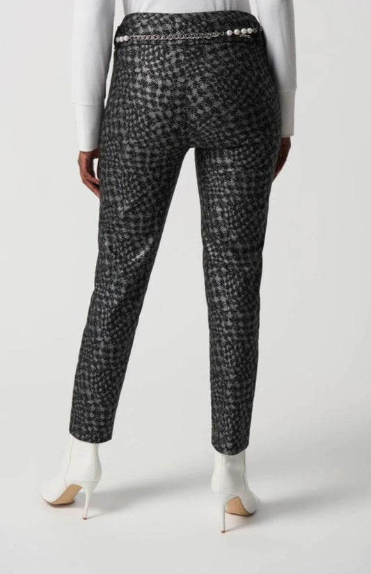 Joseph Ribkoff 233284 Black/Silver Check Pull On Slim Cropped Pants