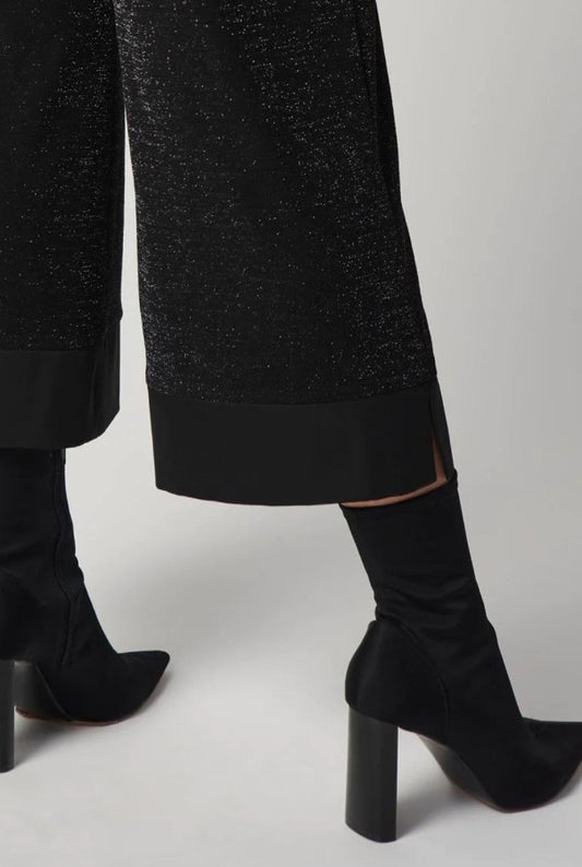 Joseph Ribkoff 234274 Black Shimmery Pull On Cropped Wide Leg Pants