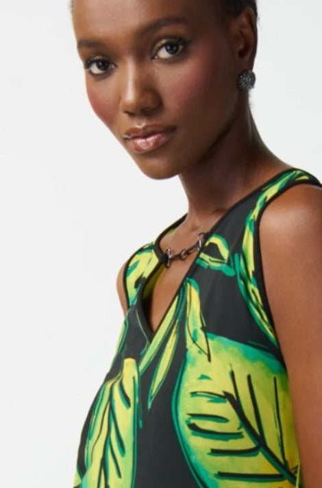 Joseph Ribkoff 241119 Black/Multi Tropical Leaf Print Sleeveless Dress