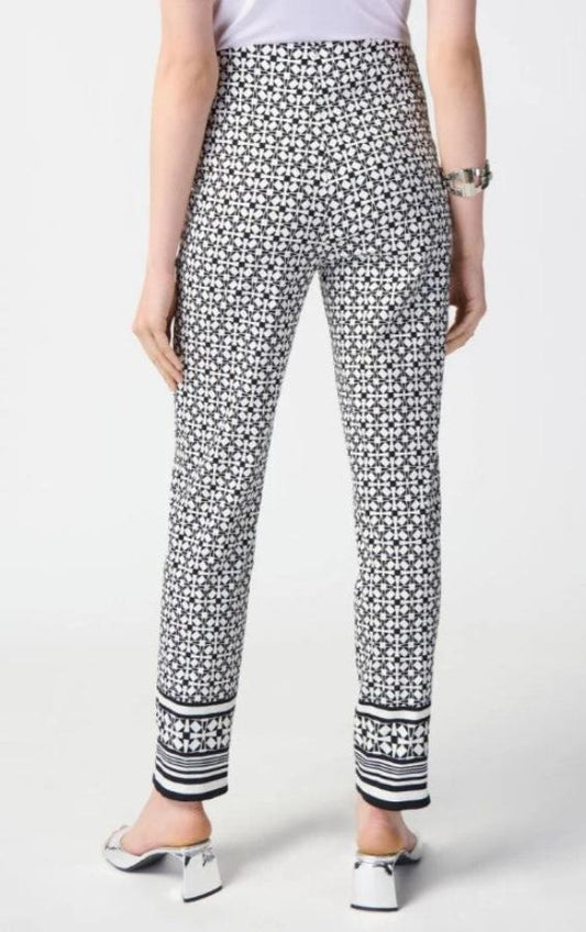 Joseph Ribkoff 241186 Vanilla/Black Geometric Print Pin Tuck Ankle Pants