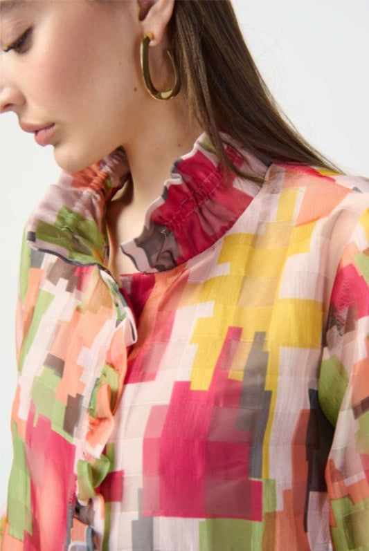 Joseph Ribkoff 241222 Multi-Color Abstract Print 3/4 Ruffled Sleeve Jacket
