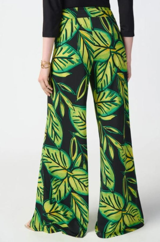 Joseph Ribkoff 241288 Black/Multi Tropical Leaf Print Wide Leg Pants