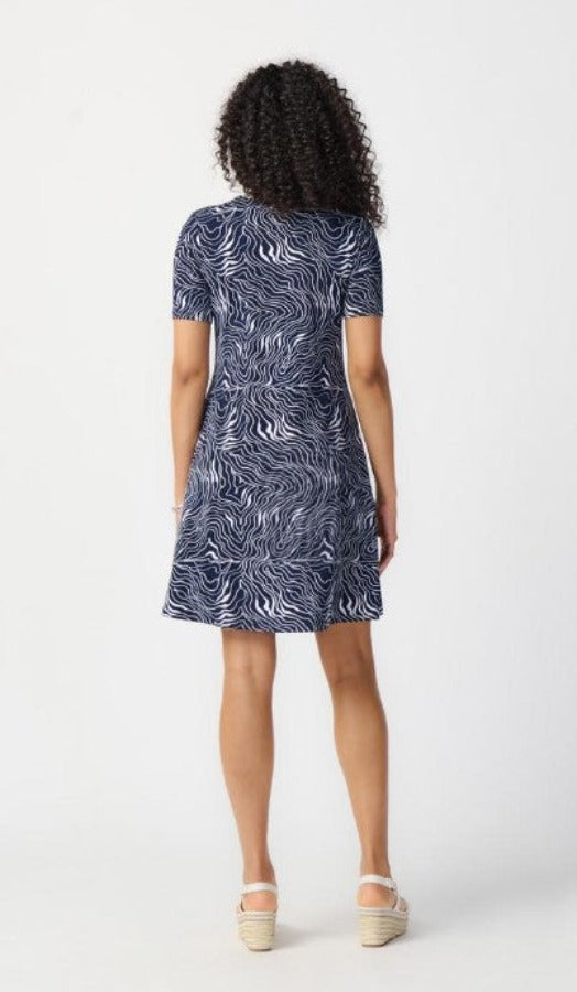 Joseph Ribkoff 241293 Midnight Blue/Vanilla Wavy Print Short A-Line Dress
