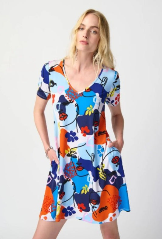 Joseph Ribkoff 241294 Vanilla/Multi-Color Face Print Mini A-Line T-Shirt Dress