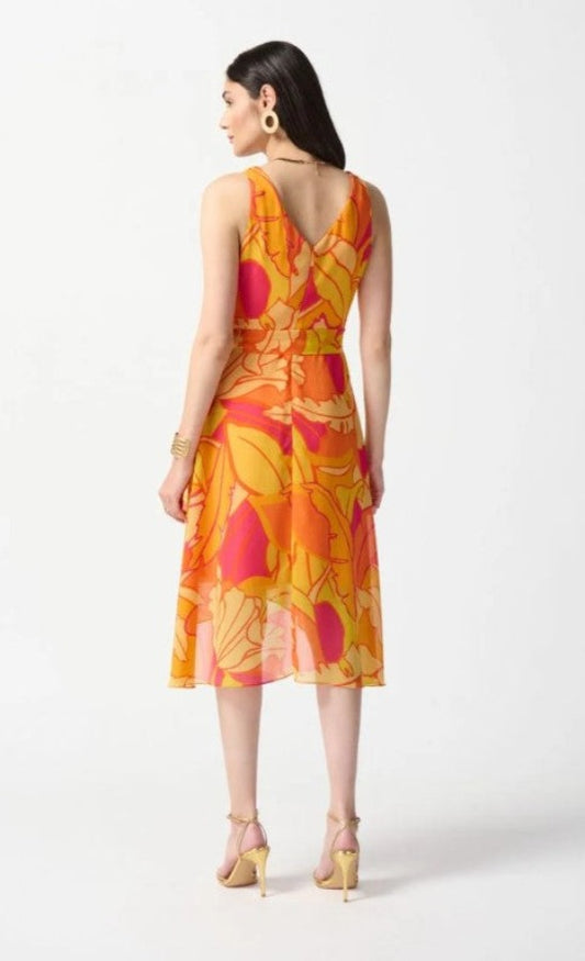 Joseph Ribkoff 242015 Pink/Multi Tropical Print Faux Wrap Midi Fit & Flare Dress