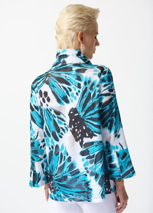 Joseph Ribkoff 242106 Vanilla/Multi Butterfly Print Jacquard Boxy Jacket