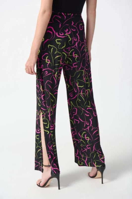 Joseph Ribkoff 242221 Black/Multi Abstract Print Side Slit Pull On Pants