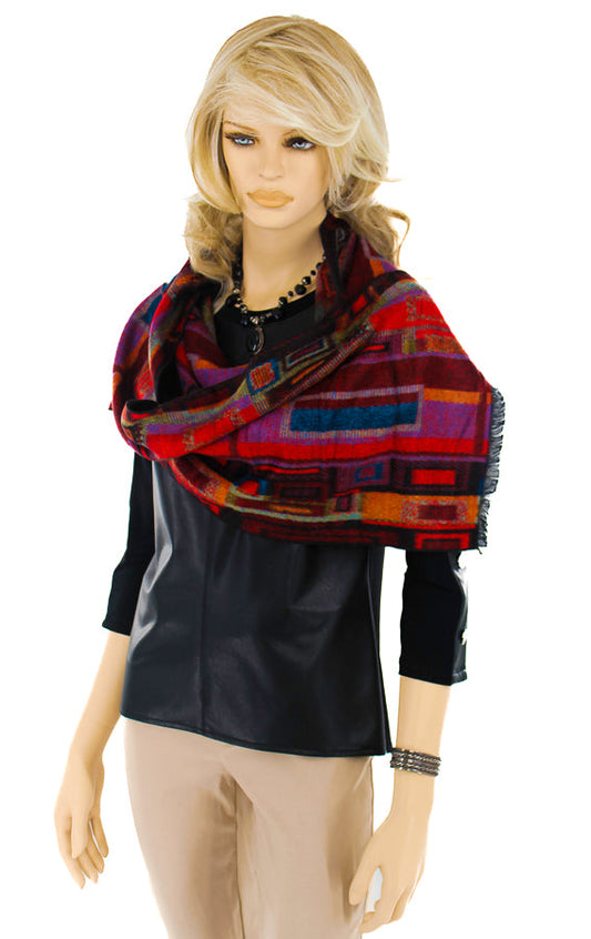 Cashmere Scarf- 172- Red/Black/Tan Print