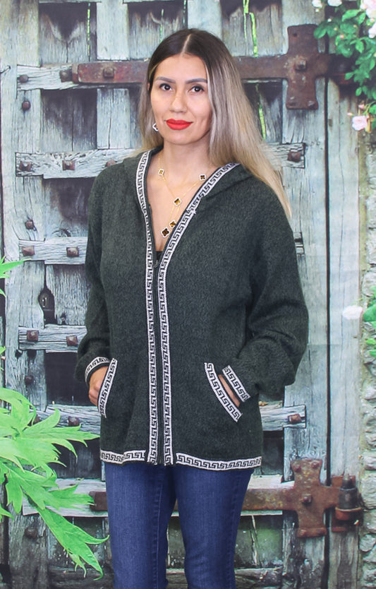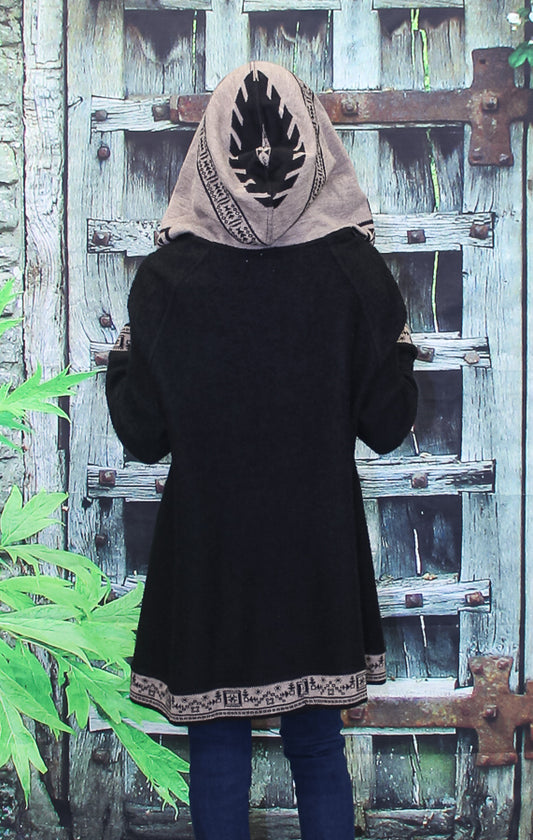Alpaca Black/Multi-Color Pattern Hooded Sweater 120740