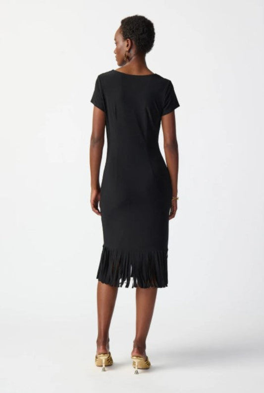 Joseph Ribkoff 241053 Black Sheath Fringe Dress