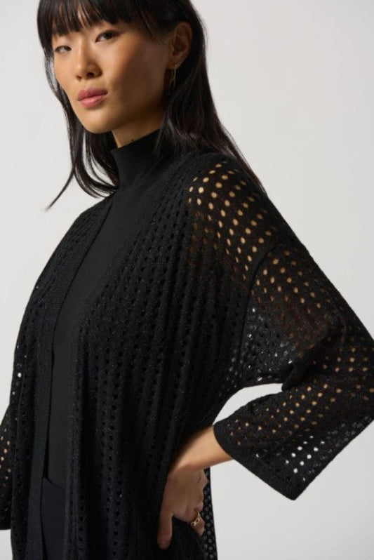 Joseph Ribkoff 233937 Black Open-Knit Longline Cardigan