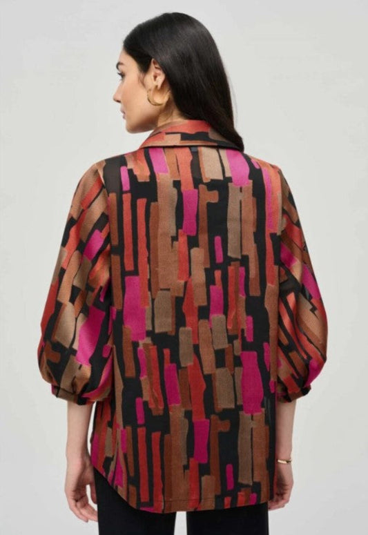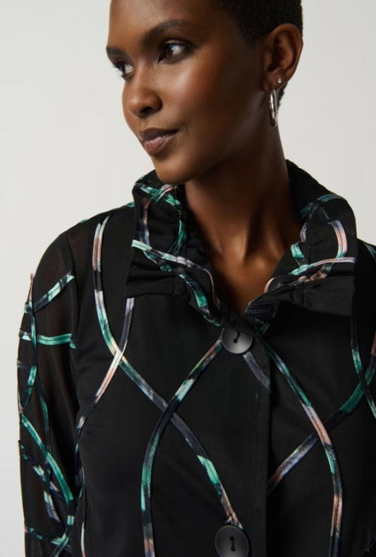 Joseph Ribkoff 244166 Black/Multi Geometric Print Organza Swing Jacket