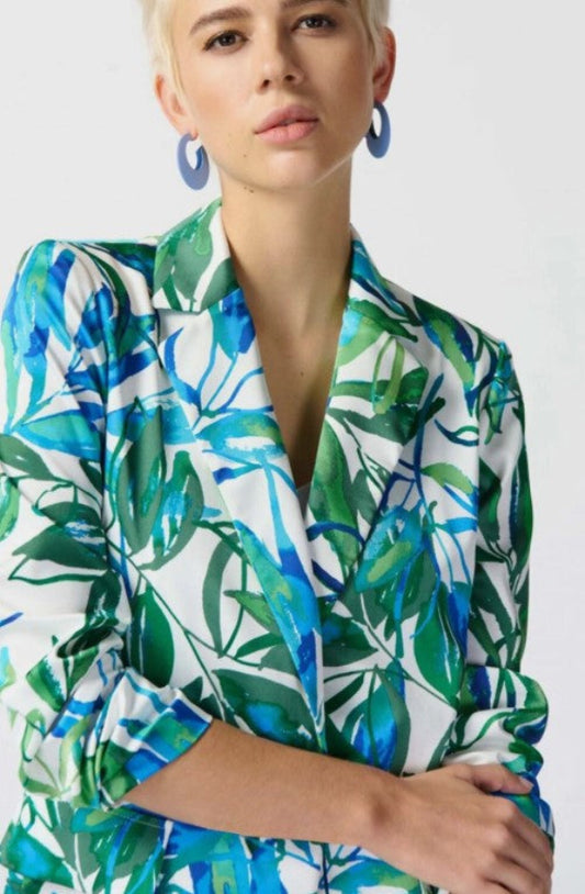 Joseph Ribkoff 242210 Vanilla/Multi Tropical Leaf Print Blazer Jacket