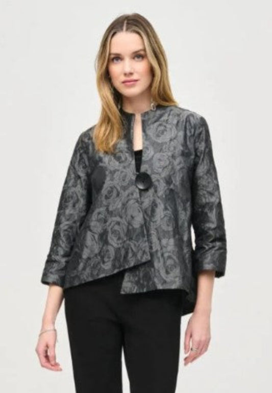 Joseph Ribkoff 243327 Black/Grey Rose Print Asymmetric Swing Jacket
