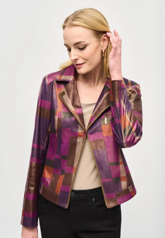 Joseph Ribkoff 243921 Multi-Color Geometric Foiled Faux Suede Jacket