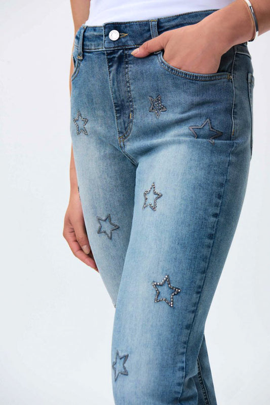 Joseph Ribkoff 231917 Vintage Blue Embellished Star Embroidered Jeans