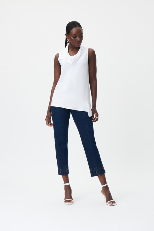 Joseph Ribkoff 232940 Dark Denim Blue Rhinestone Detail Split Front Cropped Jeans