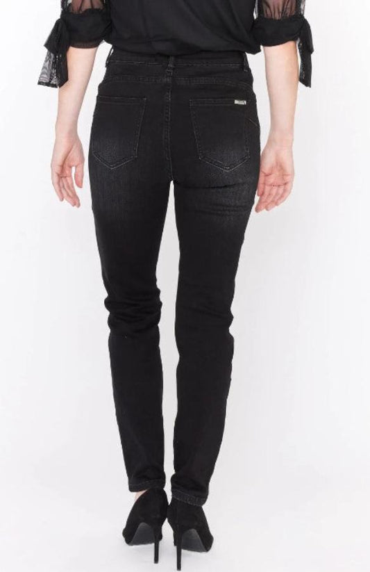 Joseph Ribkoff 243959 Black Denim Foiled Slim Ankle Jeans