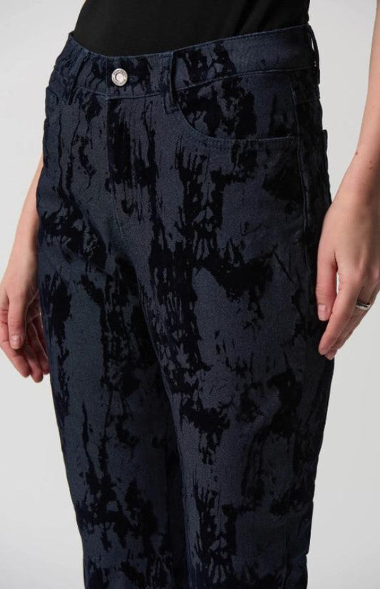 Joseph Ribkoff 233918 Dark Blue Denim Velvet Slim Straight Jeans