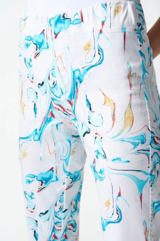 Joseph Ribkoff 242923 Multi Watercolor Print Pull On Cropped Jeans