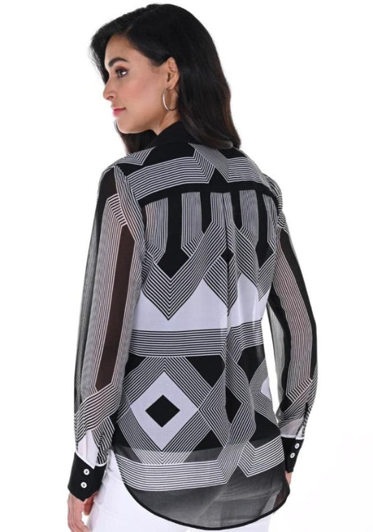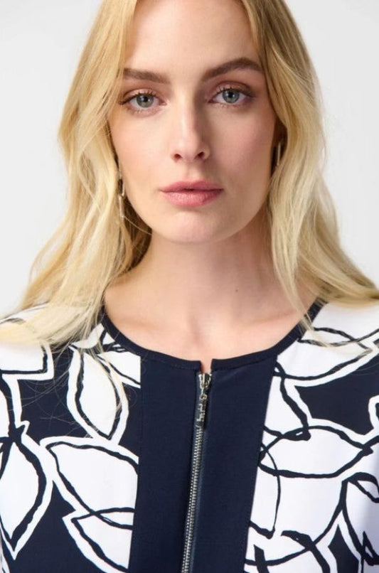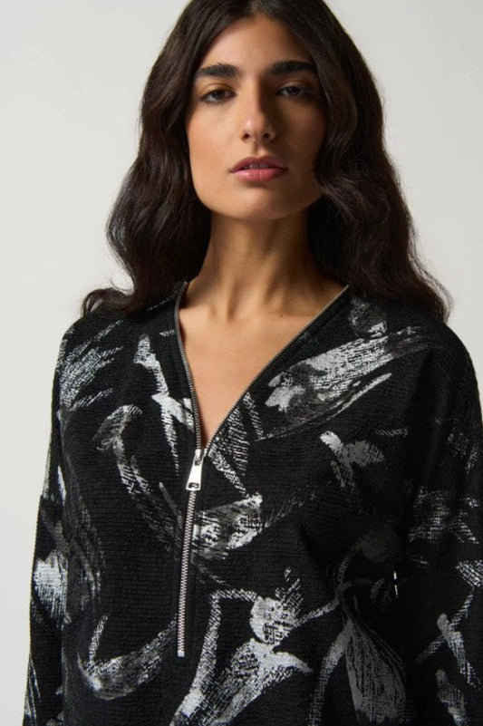 Joseph Ribkoff 233207 Black/Silver Abstract Print Zip Top