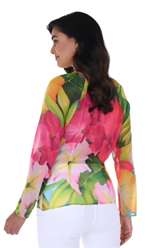 Frank Lyman 246483 Pink/Multi-Color Floral Print Sheer Top