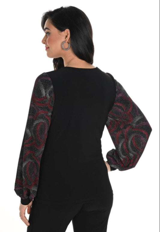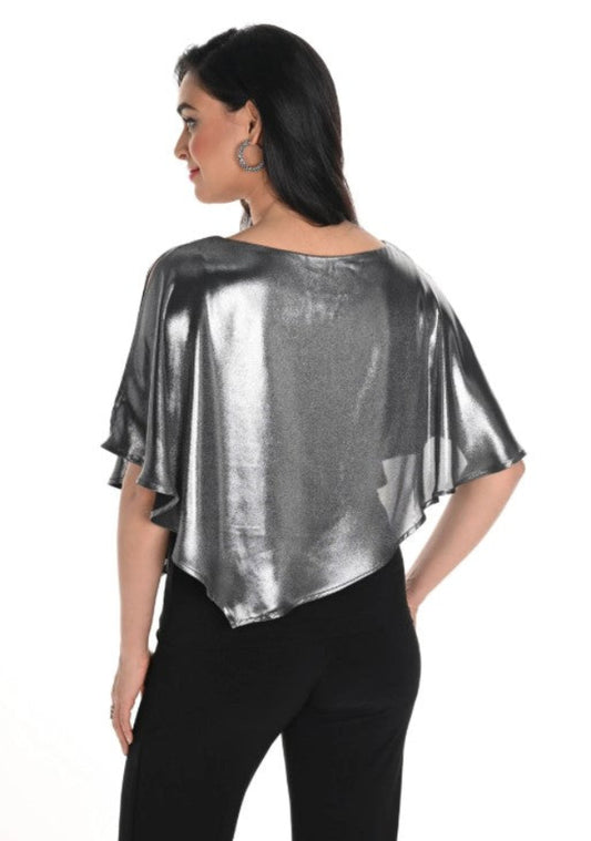 Frank Lyman 244143 Silver/Black Metallic 1/2 Split Sleeve Top