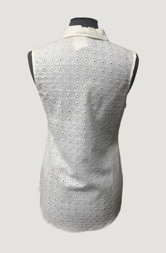 Frank Lyman 221538 White Eyelet Cut-Out Collared Sleeveless Top