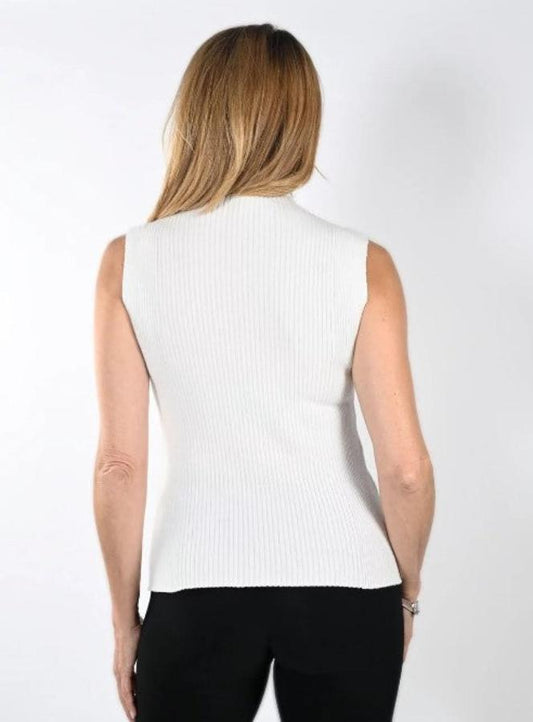 Frank Lyman 233854U Off-White Mock Neck Embellished Sleeveless Top