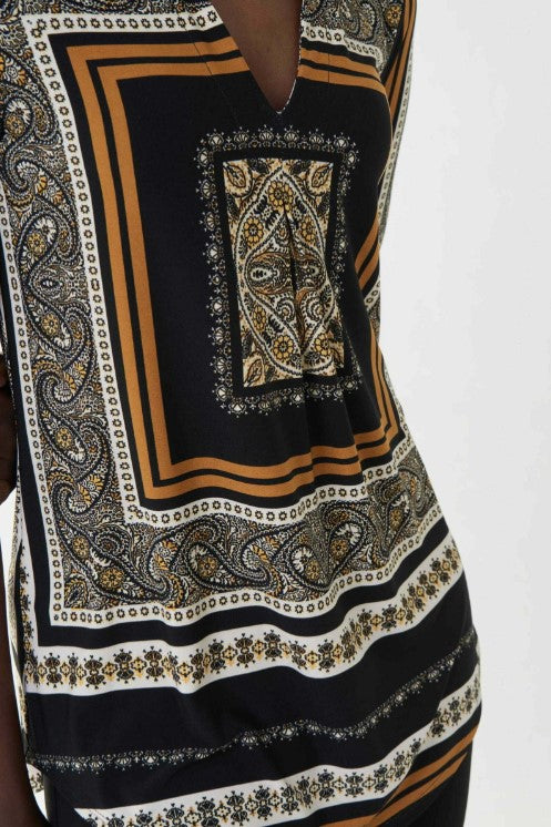Joseph Ribkoff 223228 Black/Multi Paisley Print V-Neck Top