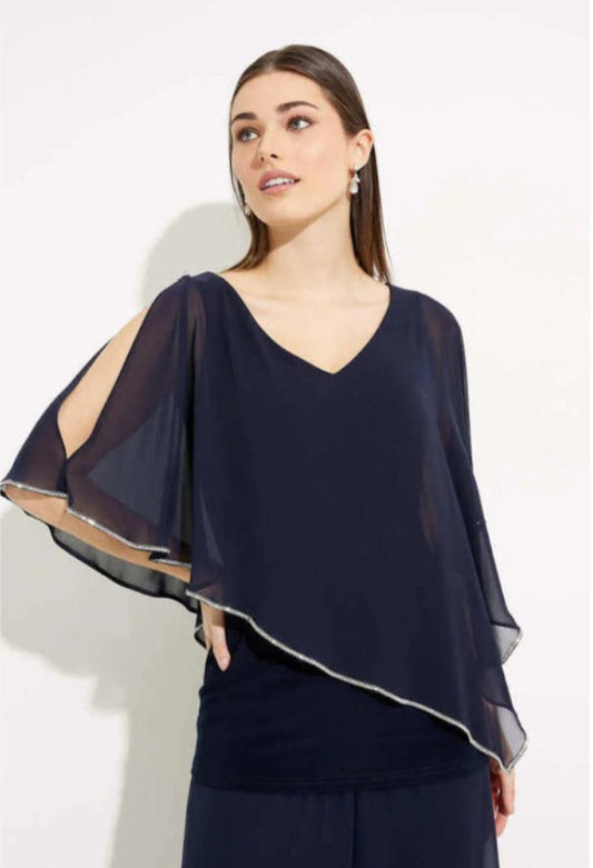 Joseph Ribkoff 223738 Midnight Blue Embellished Sheer Overlay Tunic Top